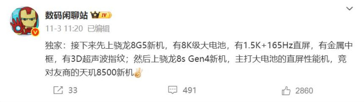 骁龙8Gen 5处理器暂定11月底发布,到时候首批机型会有两款,其中就有一加ace 6 pro max,这款手机主打核心体验,会有165Hz高刷直屏、风驰游戏内核、8000mAh大电池,游戏和续航都很强劲。