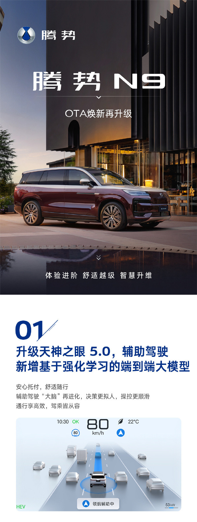 IT之家1月30日消息,比亚迪腾势N9开年OTA今日全面推送,带来天神之眼5.0、智能座舱等升级及优化。